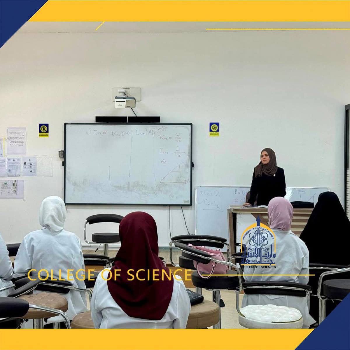 بتوجيه من عميد كلية العلوم الأستاذ المساعد الدكتورة شيماء حسين نوفل المحترمة، قررت كلية العلوم في جامعة وارث الأنبياء (عليه السلام) تقديم محاضرات إلكترونية لطلبة قسم الفيزياء الطبية وقسم تكنولوجيا المعلومات. جاء هذا القرار بسبب سوء الأحوال الجوية وصعوبة حضور الطلبة إلى الجامعة.
