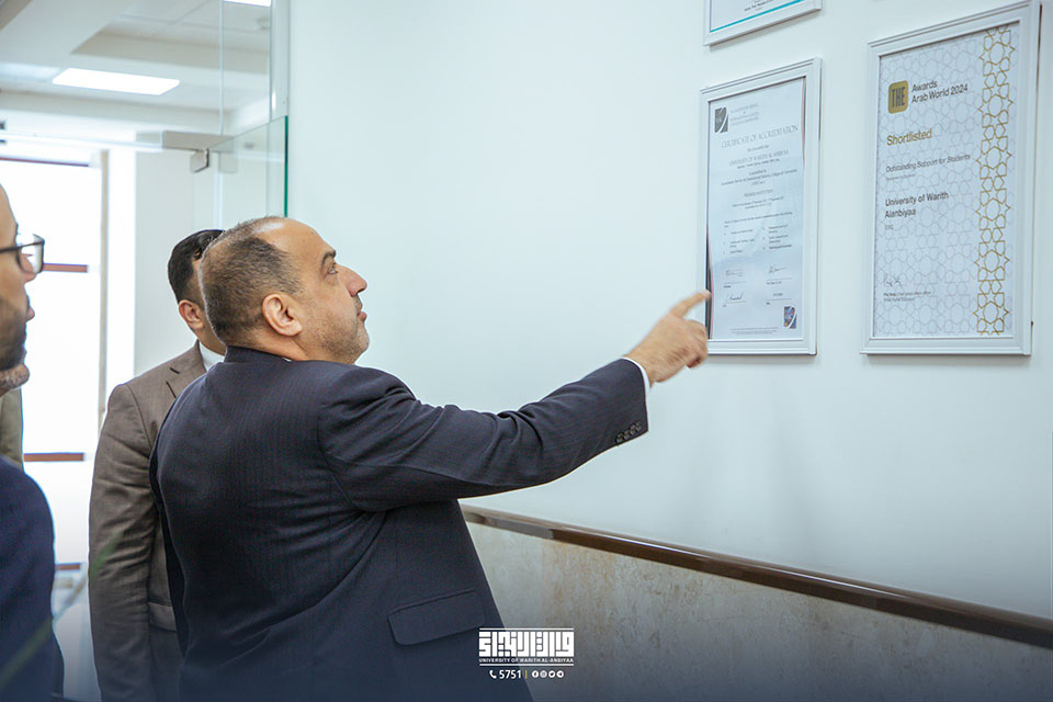 وخلال اللقاء مع كادر القسم، تم استعراض آليات العمل والإنجازات المتحققة، بما في ذلك الاعتمادات والعضويات الدولية التي حصلت عليها الجامعة، في إطار سعيها المستمر نحو الارتقاء بجودة الأداء المؤسسي.