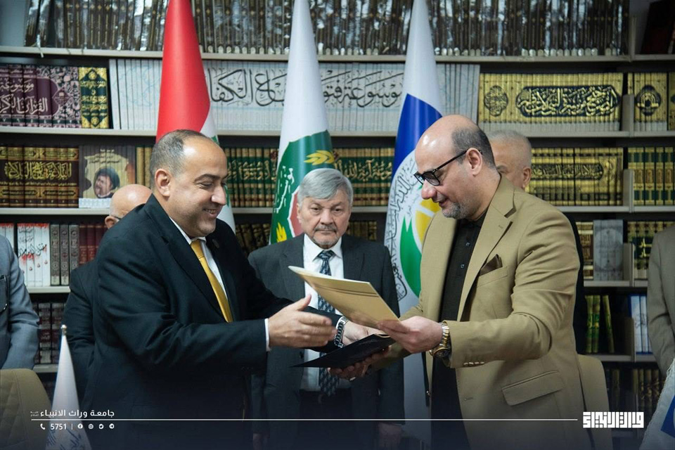 احتفت جامعة وارث الأنبياء (عليه السلام) بتسلّم نسخة من المصحف الشريف المخطوط الذي شارك في كتابته طلبة الجامعة وأساتذتها ومنتسبوها، في احتفال رسمي أُقيم بالمكتبة المركزية، بحضور الاستاذ الدكتور إبراهيم سعيد الحياوي رئيس الجامعة، وعدد من عمداء الكليات.
