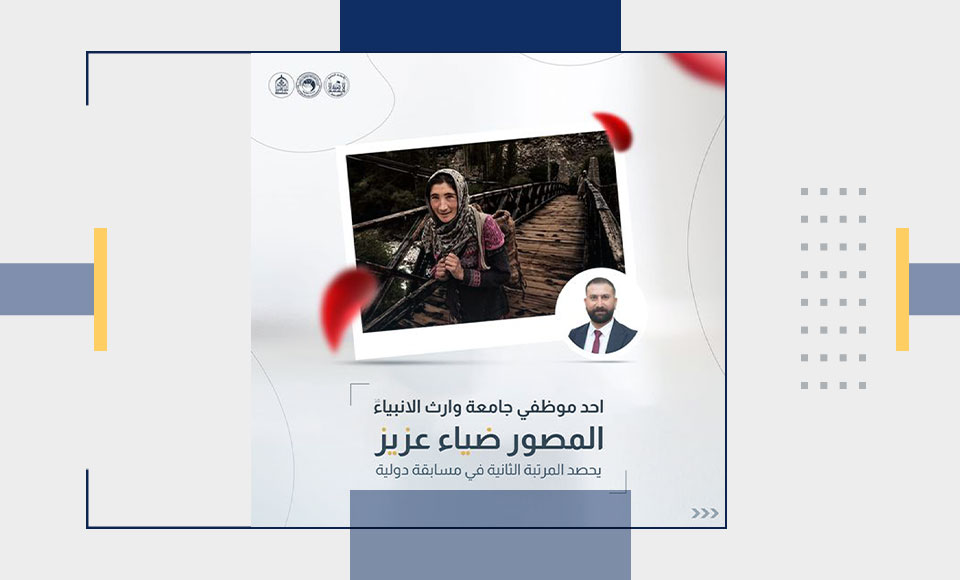 حقق المصور ضياء عزيز الكلكاوي، أحد موظفي جامعة وارث الأنبياء (عليه السلام)، إنجازاً مميزاً بحصوله على المرتبة الثانية في مهرجان كردستان الدولي الأول للتصوير الفوتوغرافي. هذا التكريم جاء تقديراً لمهاراته الإبداعية وتميزه في هذا المجال، وسط منافسة قوية من مشاركات دولية عديدة.