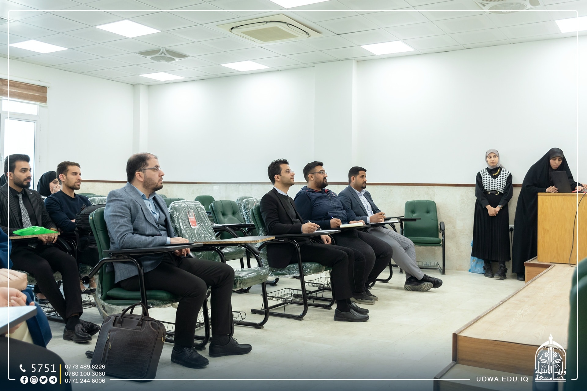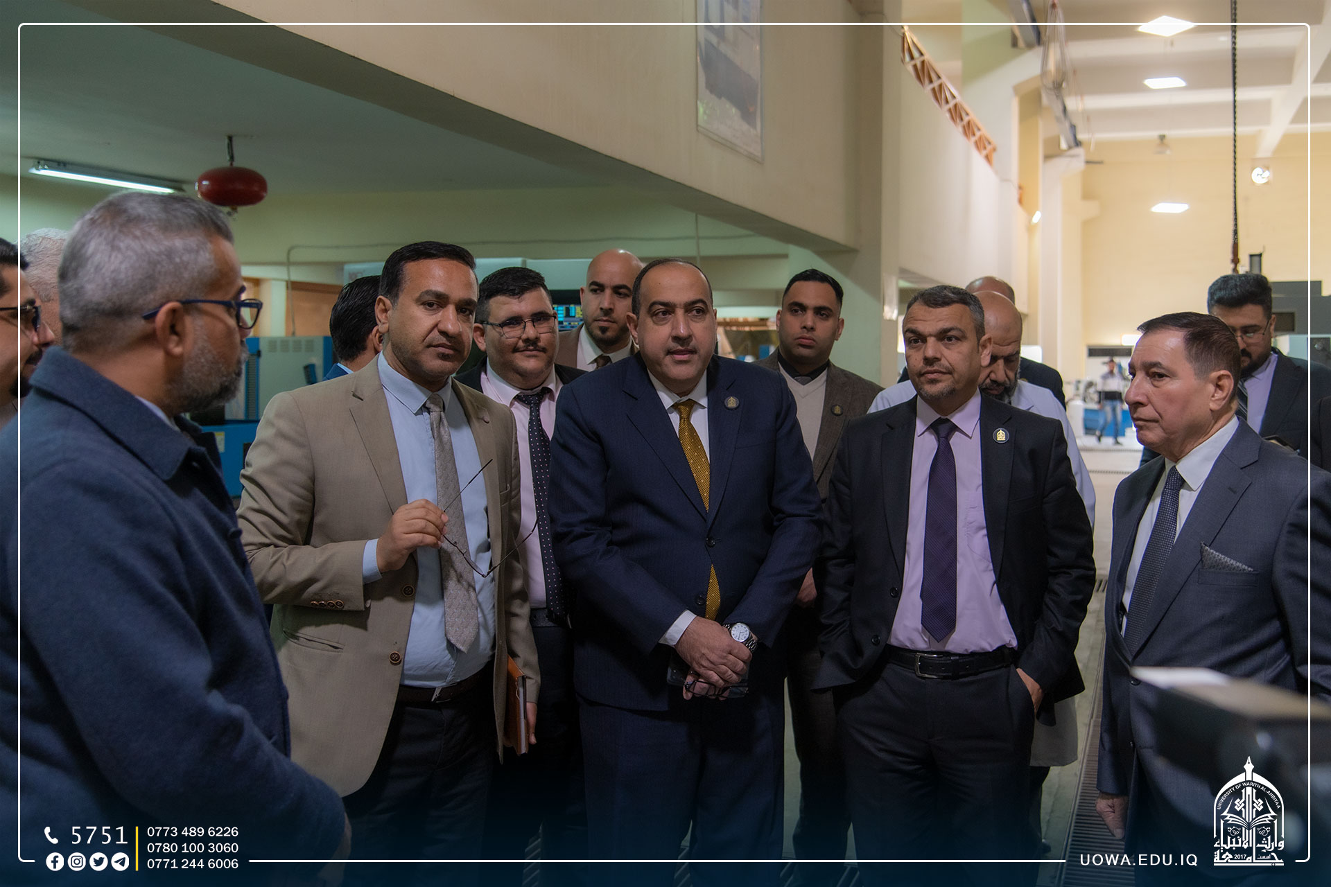 بحضور مساعد رئيس الجامعة للشؤون العلمية الاستاذ الدكتور عباس الدعمي وعميد كلية الهندسة الاستاذ الدكتور واقد الموسوي، والاستاذ محمد الكناني رئيس قسم تطويرالموارد البشرية / مركز رعاية الشباب بالعتبة الحسينية المقدسة.