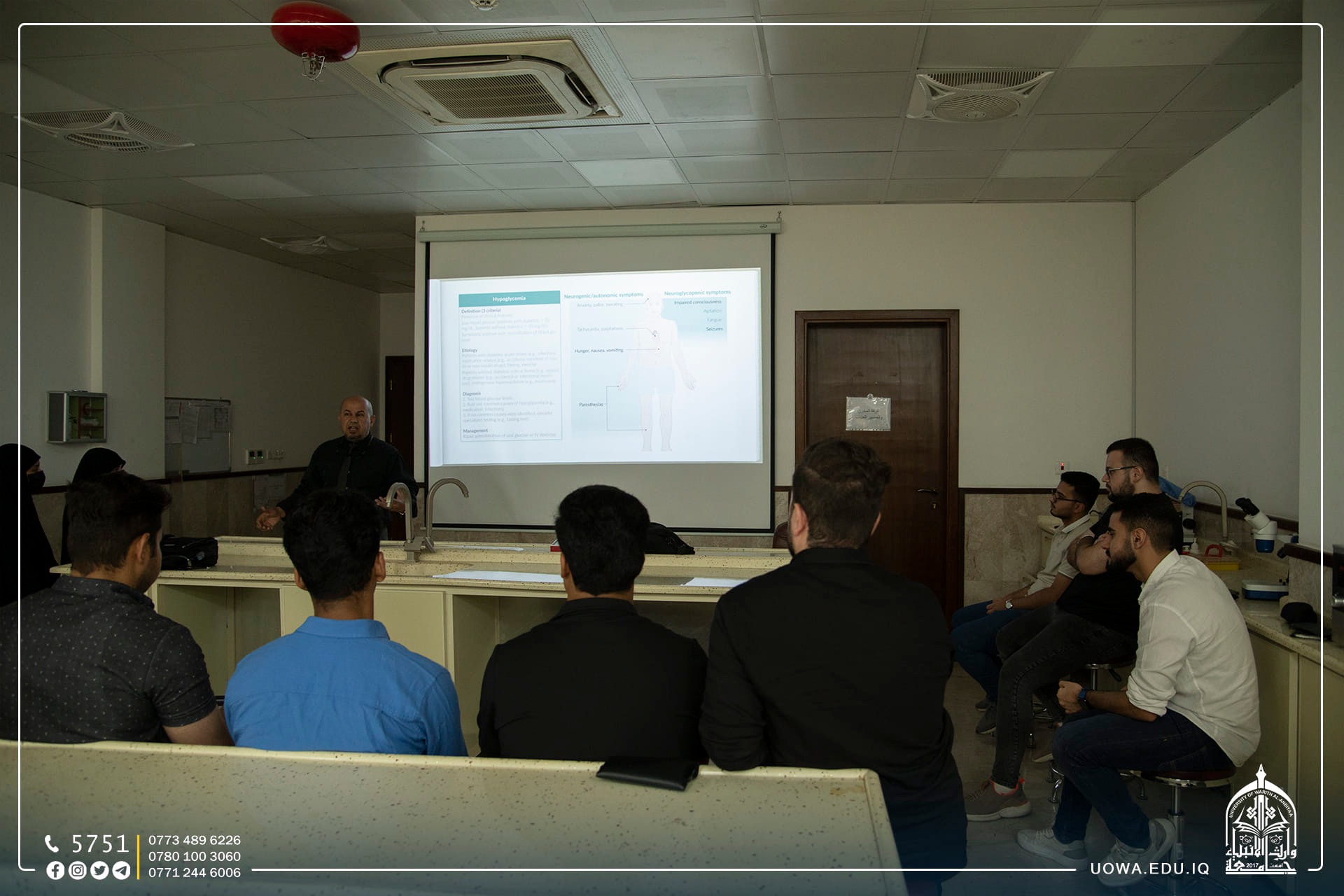 التقطت عدسة أعلام جامعة وارث الأنبياء (عليه السلام) لليوم الثاني على التوالي صورا لطلبة كلية الطب اثناء تدريبهم ضمن (الكورس التدريبي المكثف الأول) والذي استضافت فيه الجامعة عدد من الأطباء والمتخصصين, وذلك لتحسين الأداء وتعزيز المهارات الطبية.