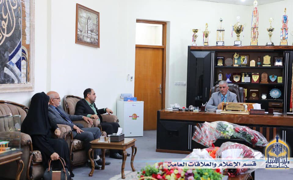 An official delegation from the University of Warith Alanbiyaa and Al Zahraa University which are affiliated to Directorate of Imam Hussain Holy Shrine, headed by the acting President of UOWA Dr. Abbas Al-Daami visited the University of Karbala to congratulate Dr. Basim Khalil Al-Saeedi for being the acting president for the University of Karbala. In return, Dr. Al-Saeedi thanked the delegation for their visit, confirming his university's keenness to cooperate with the two universities in order to promote the educational reality in our country.