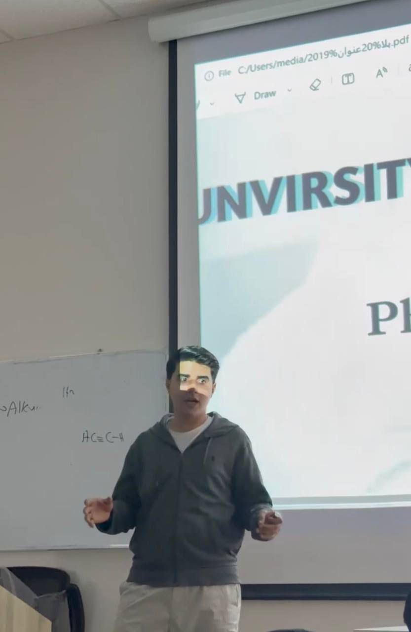 As part of the ongoing student scientific activities, and in the presence of the Dean of the College of Pharmacy, student Murtaza Hassan Abdul-Hadi Mansi delivered a distinguished presentation entitled "Types of Pharmaceutical Errors."