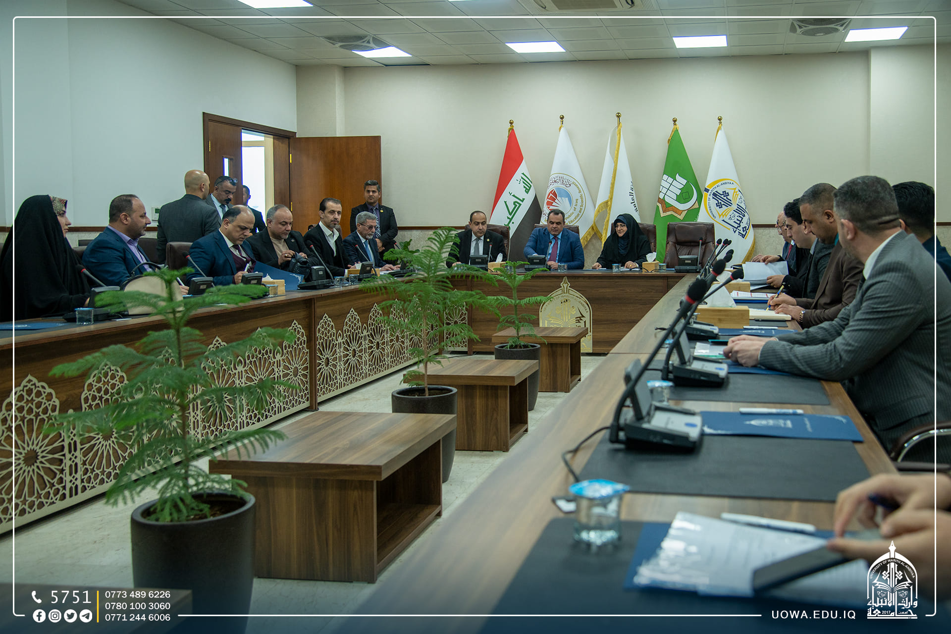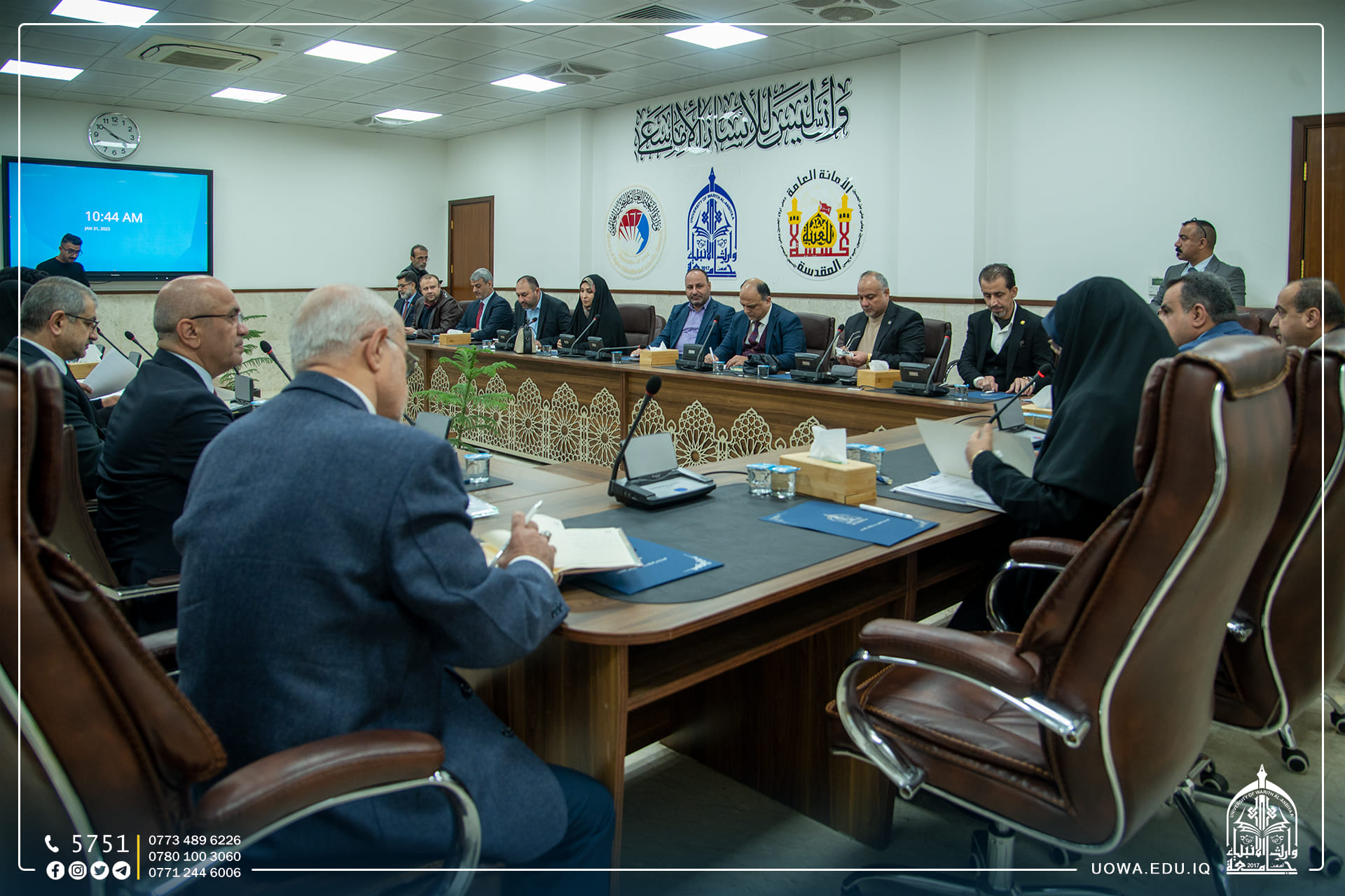 The first meeting of the heads of educational and health institutions at Alhussainia Holy Shrine was held on Wednesday Feb. 1st 2023 to discuss the possibility of cooperation in order to improve and achieve integration with the work of the institutions of Alhussainia Holy Shrine. The meeting was chaired by Dr. Sattar Al-Saadi, President of the Health and University Education Authority, and attended by the Presidency of Warith Al-anbiyaa University represented by Prof. Dr. Ibrahim Al-Hayawi, the university hosted the first meeting. This meeting came to enhance cooperation between institutions and discuss issues of practical training for university students in health institutions and the need to provide all the necessary requirements to make the outputs of these institutions keep up-to-date with global developments.