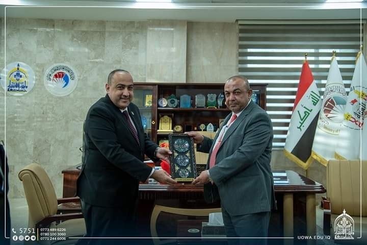 During his visit to Warith Al Anbiyaa University  and his meeting with the President of the University, Prof. Ibrahim Al-Hayawi, Prof. Shafiq Al-Mawla, President of Alayen University, explained the possibility of scientific and academic cooperation between the two universities. In addition to the two parties' emphasis on implementing the strategy of the Ministry of Higher Education in developing plans to enter the international rankings and the possibility of receiving foreign students in our universities.