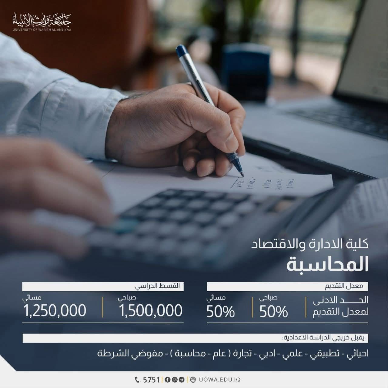 Warith Al-Anbiya University - where we graduate professional accountants with theoretical knowledge and a practical approach, capable of analyzing financial data and contributing to supporting businesses and institutions according to modern standards.