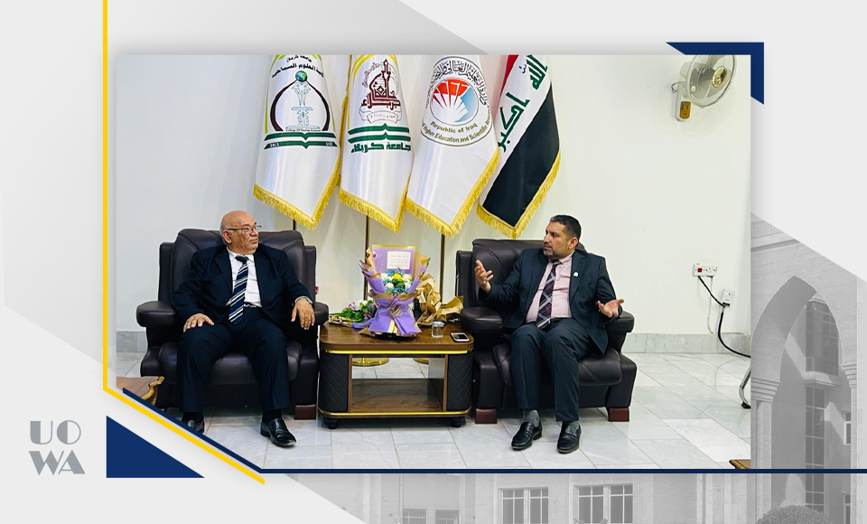 As part of enhancing academic cooperation and exchange of expertise between academic institutions, a delegation from the College of Administration and Economics at Warith al-Anbiya University, headed by Professor Awad al-Khalidi, visited the College of Tourism Sciences at the University of Karbala to discuss prospects for academic and research cooperation between the two sides.