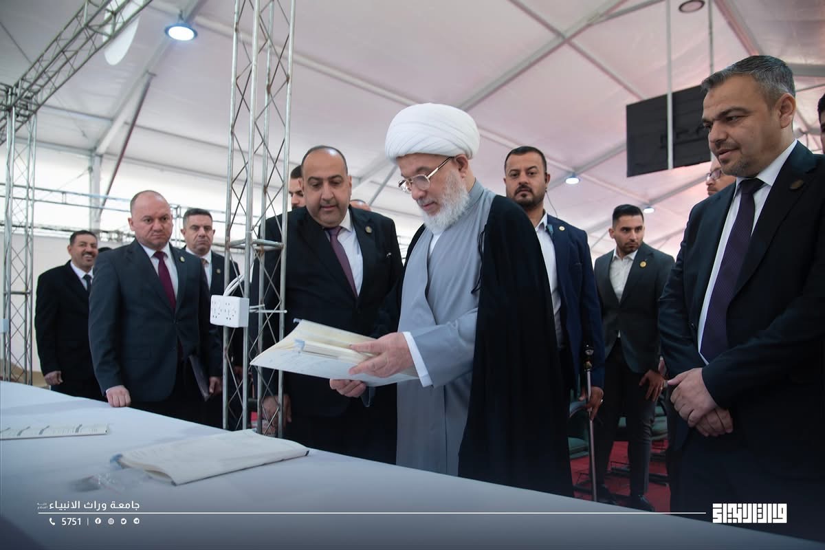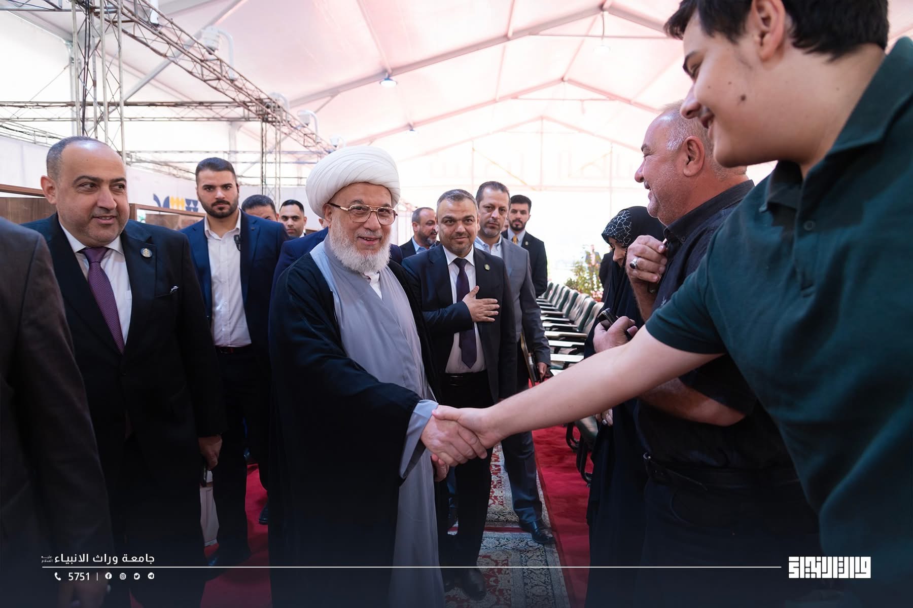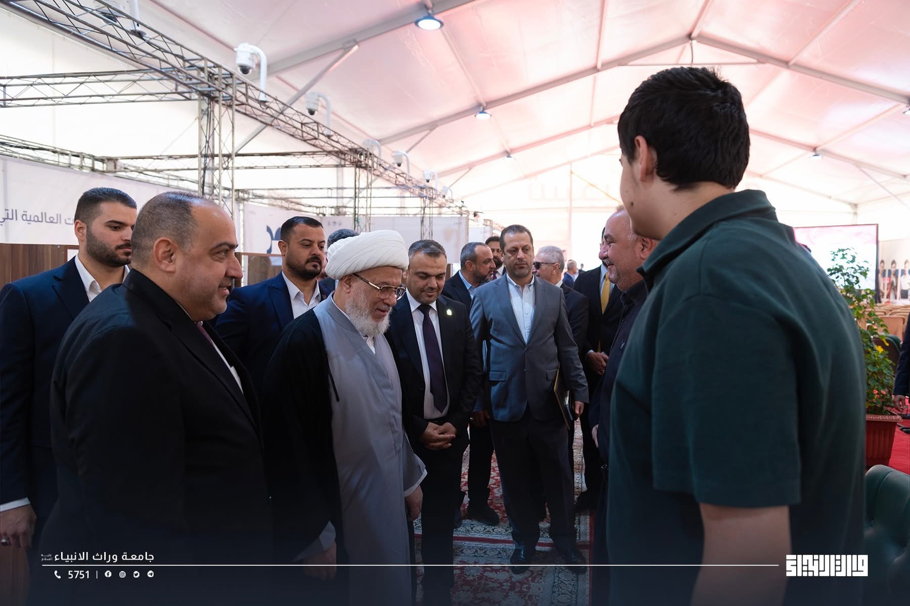 The representative of the Supreme Religious Authority, His Eminence Sheikh Abdul Mahdi Al-Karbalai ,visits the registration tent at Warith Al-Anbiyaa University