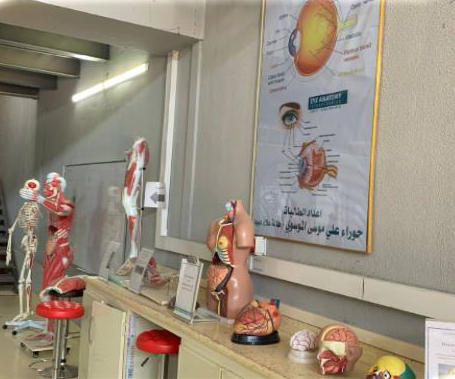 It specializes in studying the practical side of anatomy and the student gets acquainted in this laboratory with the natural parts of the human body and depends on training on imported plastic dolls and plastic parts are available in the laboratory for various body systems.