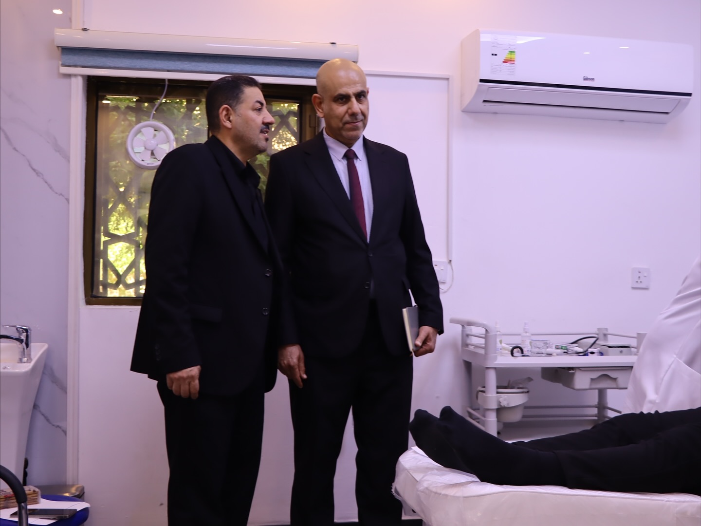 Professor Dr. Ali Abdul Saadoun Al-Ghazi, Dean of the College of Medicine at Warith Al-Anbiya University (PBUH), conducted a field visit to several of the college's halls and laboratories. During the visit, he met with practical groups and teaching assistants to review the progress of academic work and the level of support provided to them and the students. The Dean toured the classrooms and scientific laboratories, listening to the observations of the teaching assistants and practical groups regarding the needs of the scientific departments and the requirements for developing the infrastructure in line with the principles of modern medical education. He also discussed with the teaching staff ways to improve students' practical and clinical performance, emphasizing the college's commitment to providing a comprehensive academic environment that helps them develop their scientific and practical skills. Professor Dr. Ali Abdul Saadoun Al-Ghazi stressed the college's continued commitment to enhancing the quality of the educational process, modernizing laboratories, and supporting initiatives that contribute to developing the skills of both students and teaching assistants. This visit is part of the college's ongoing approach to field monitoring to ensure the readiness of classrooms and laboratories and to provide all the requirements for the success of the educational process.