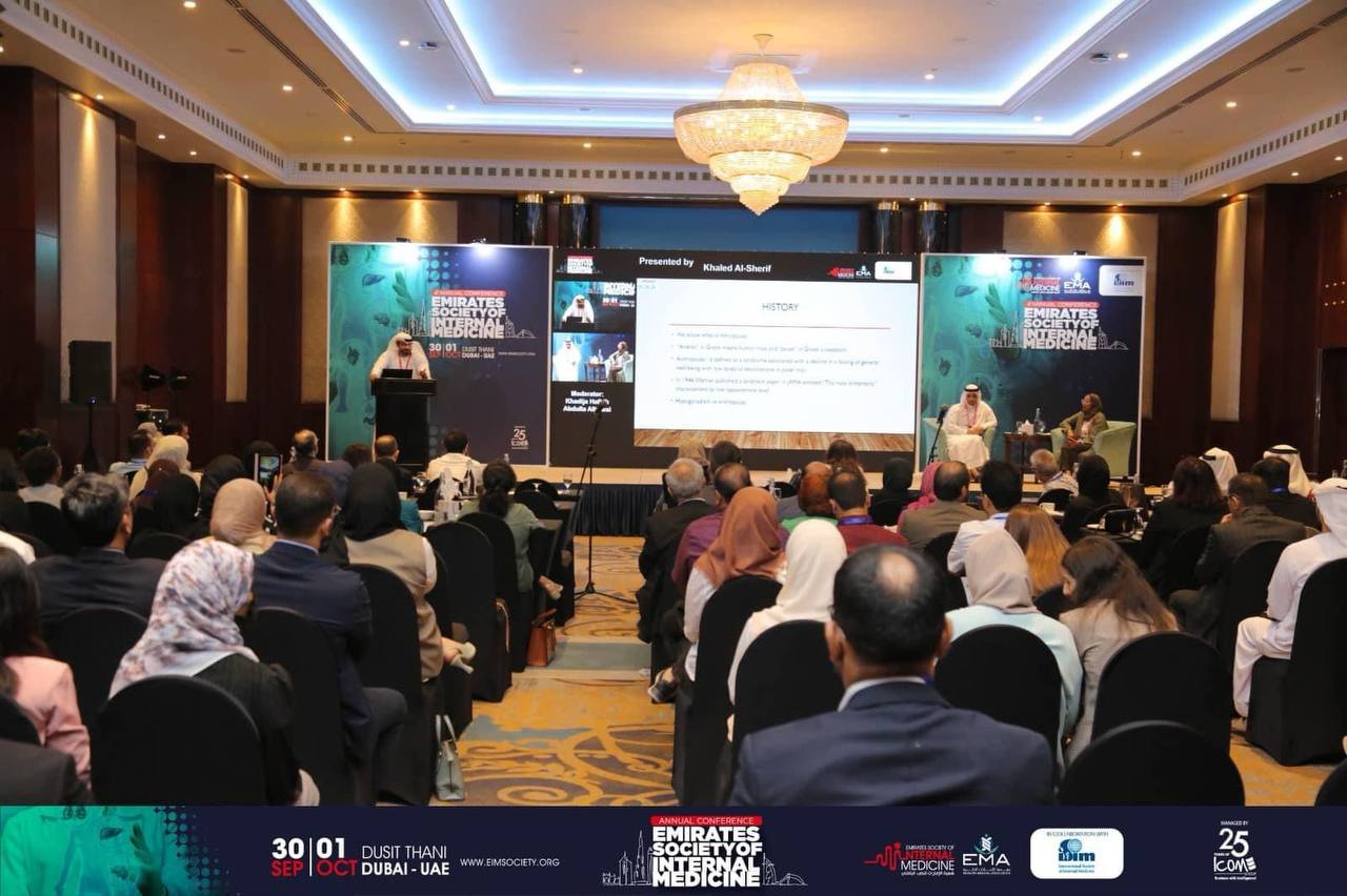 The Department of Medical Research at Warith Al-Anbiya University, Faculty of Medicine, presented a research titled:“The relationship between alcohol addiction and aggressive behavior among Iraqi people in 2022”At the annual conference of the Emirates Internal Medicine Society in Dubai, where the research was accepted and selected to participate in the conference as a poster from among hundreds of research papers submitted to the resident committees.