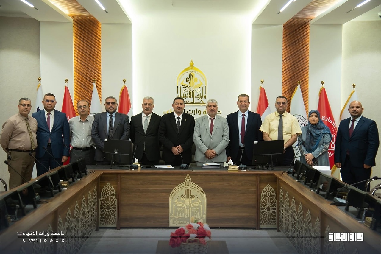 Within the framework of academic openness and strengthening cooperation between educational institutions, the President of Warith Al-Anbiya University, Professor Dr. Ibrahim Saeed Al-Hayawi, and the Dean of the College of Medicine, Professor Dr. Ali Abdul Saadoun, received a delegation from Hammurabi College of Medicine – University of Babylon, headed by the Dean of the College, Professor Dr. Hadi Al-Moussawi, in an official scientific visit during which a joint cooperation agreement was signed between the two sides. The agreement aims to develop the fields of medical education, scientific research, clinical training, and the exchange of academic expertise between the two colleges, thereby contributing to raising the level of medical education in Iraq and providing an integrated scientific environment that supports innovation and research.