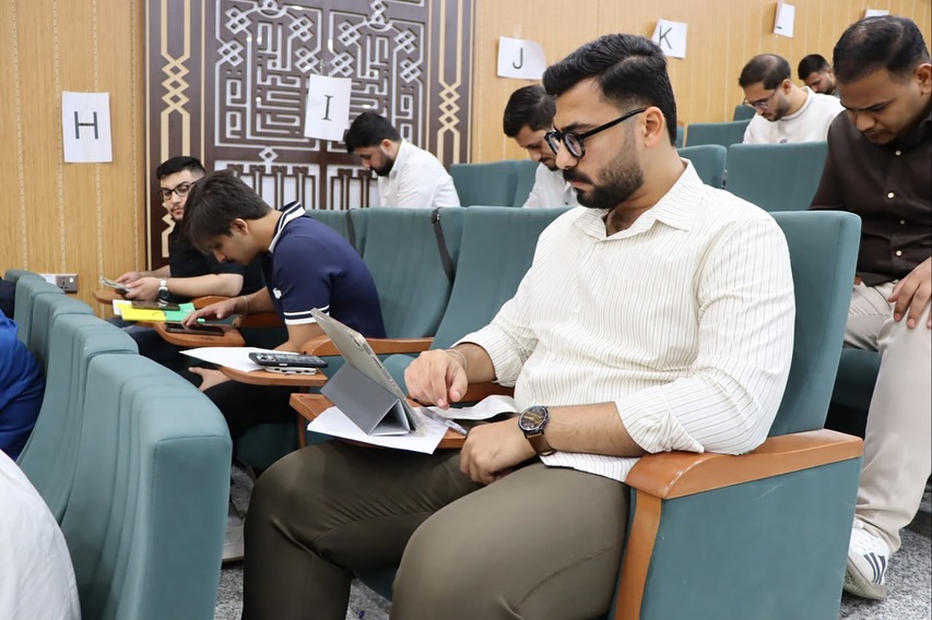 The images show the students' serious engagement during the electronic exams and the smooth flow of the examination process at the College of Medicine, Warith Al-Anbiya University (peace be upon him)