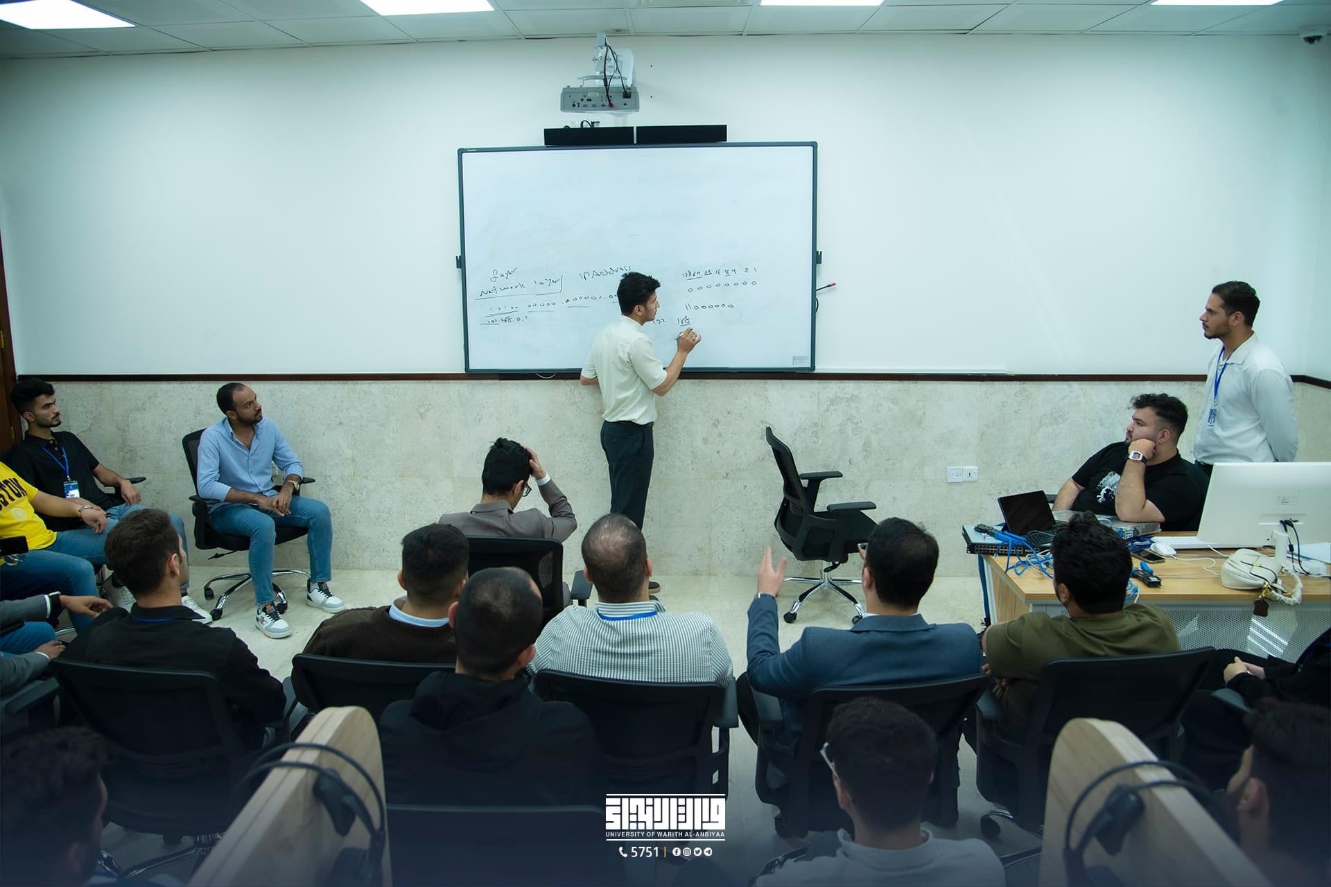 In an effort to enhance students' skills during the spring break, the College of Science at the University of Warith Al-Anbiyaa (peace be upon him), specifically the Information Technology Department, organized a practical training course on network installation and programming for first-year students.