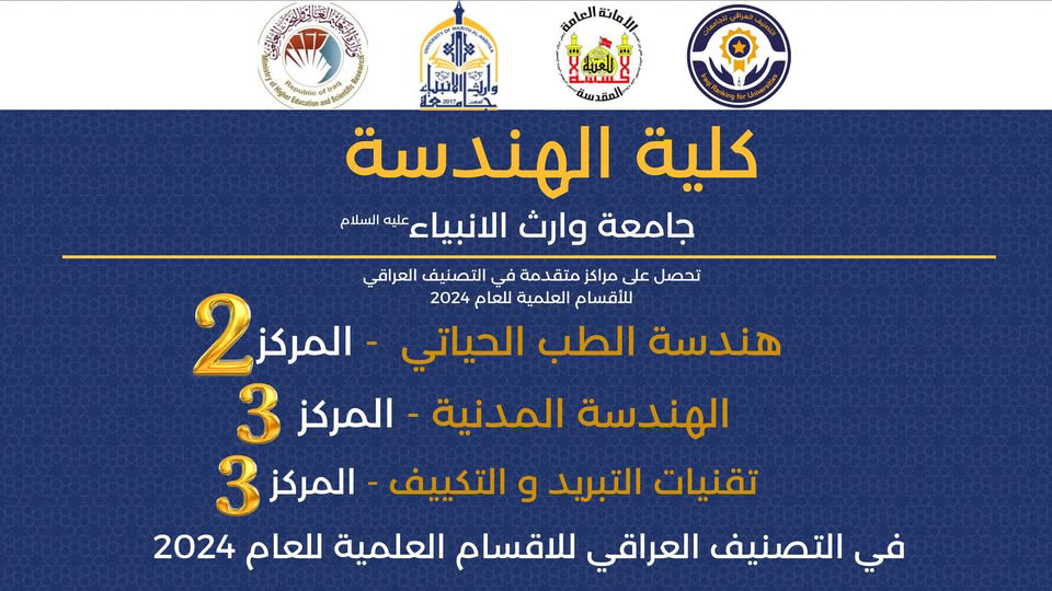 The engineering departments at the University of Warith Al-Anbiyaa (PBUH) have achieved remarkable success in the Iraqi university and private college rankings announced by the Ministry of Higher Education and Scientific Research.