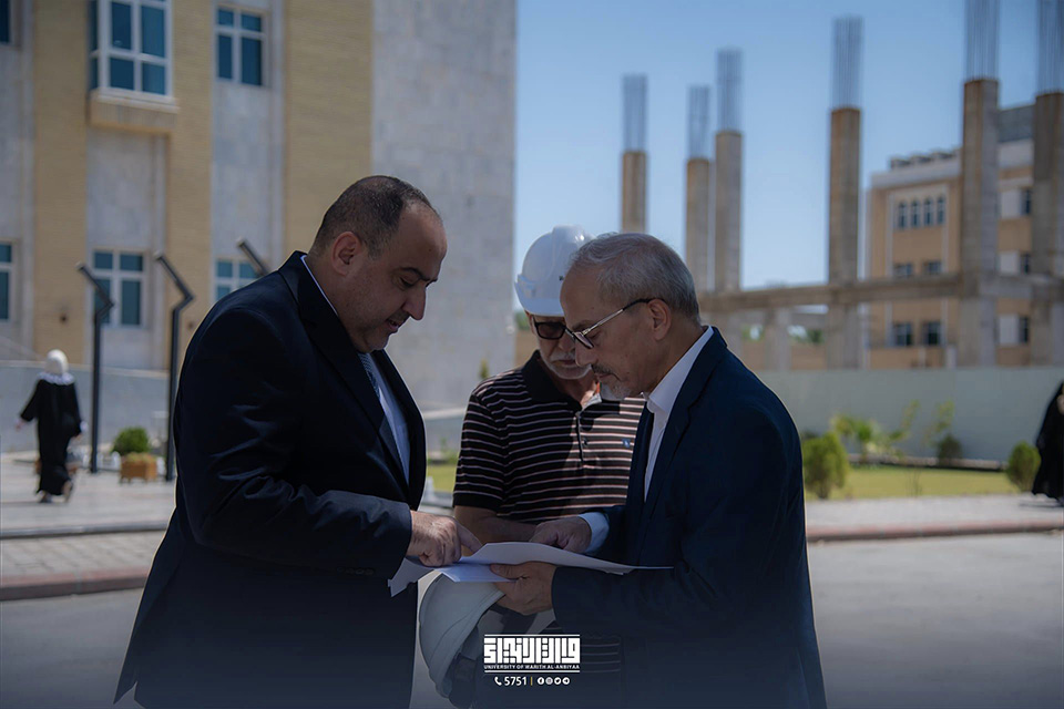 The University President, Professor Dr. Ibrahim Al-Hayawi, conducted an inspection tour inside the university's corridors to ensure ongoing field follow-up, which in turn improves the quality of the finished work. Al-Hayawi was briefed on the current state of development and construction projects, together with their completion rates.