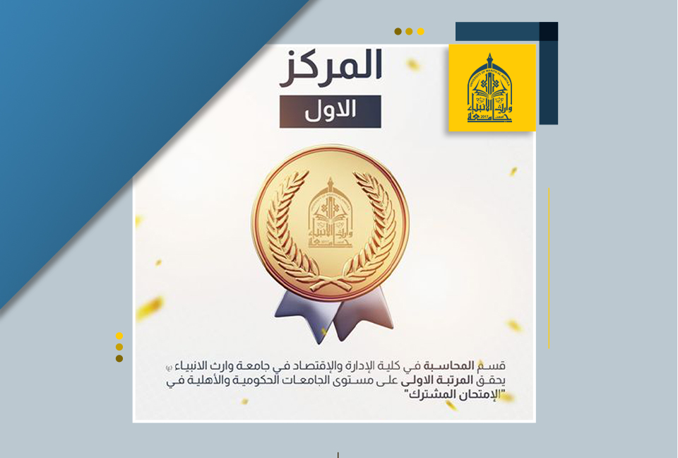 The Presidency of the University of Warith Al-Anbiyaa (PBUH) congratulates the professors and students of the Accounting Department in the College of Administration and Economics for achieving “First Place” at the level of public and private universities in the Holy City of Karbala in the “Joint Exam.” This accomplishment is a testament to the department's quality control, outstanding instruction, and efforts to get students ready for academic competition.