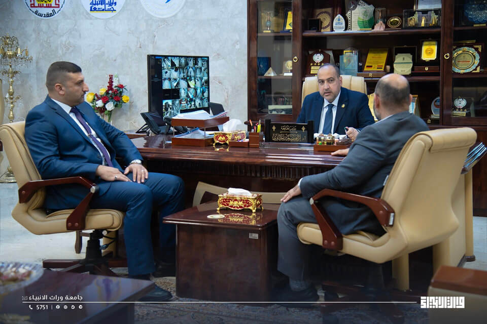 The University of Warith Al-Anbiyaa (PBUH) in Karbala welcomed Professor Dr. Nashaat Saliwa, President of Al-Hamdaniya University in Mosul. He was received by Professor Dr. Waqid Al-Moussawi, Vice President for Academic Affairs, and Professor Dr. Nawfal Al-Araji, Vice President for Administrative Affairs.