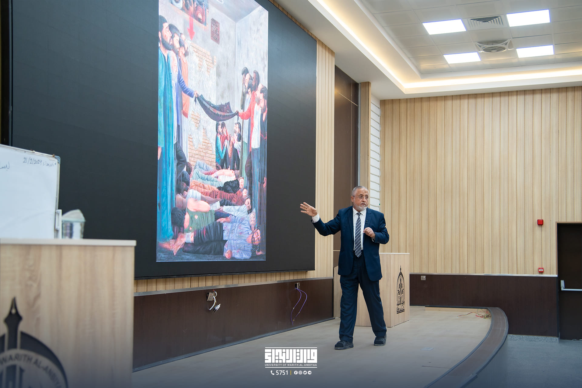 As part of its continuous efforts to enhance culture among its students, the College of Medicine at Warith Al-Anbiyaa University (peace be upon him) hosted Sheikh Zaman Al-Hasnawi, in the presence of the College's Dean, Prof. Dr. Ali Abd Saadoun Al-Ghazzy, and a group of students and academics.